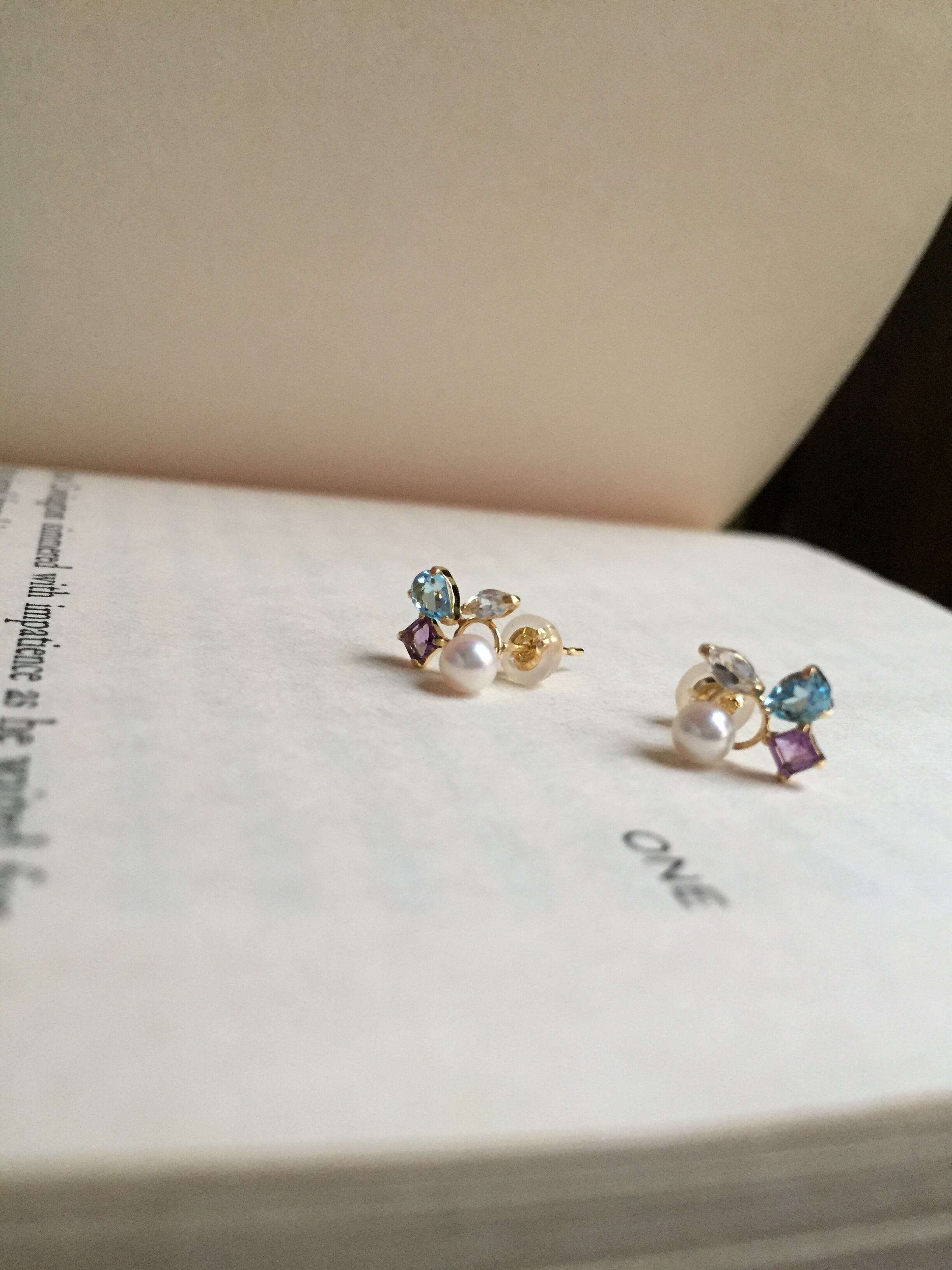 ▫k18金ゴールドベビーパールといろいろな石ピアス